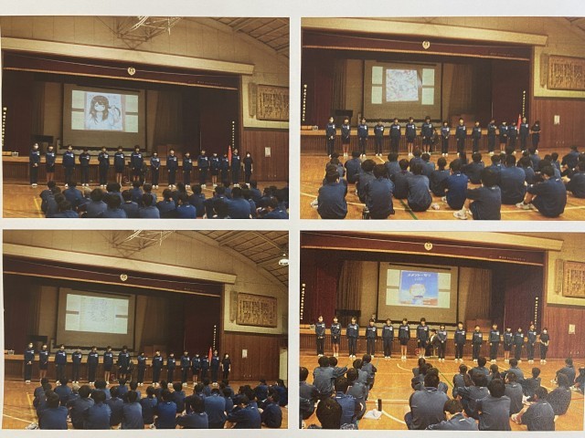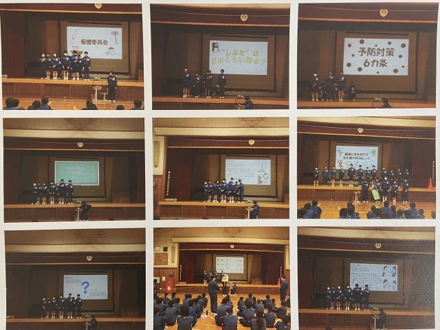 令和7年12月19日(金)−1 公開日 2025/12/19 更新日 2025/12/19 今日の八條中学校 生徒集会(その1) 図書委員会が「寒い冬に心が温かくなる本」を紹介してくれました。保健委員会は健康に冬を乗り切るための予防対策を説明してくれました。