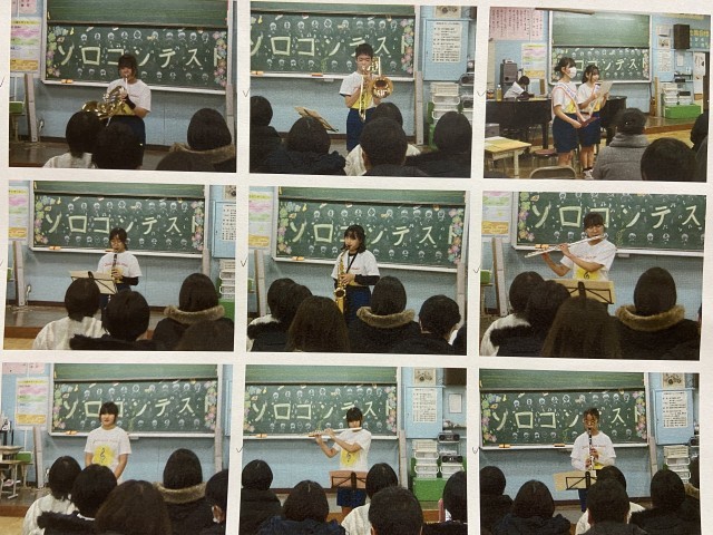 令和7年12月27日(土) 公開日 2025/12/27 更新日 2025/12/27 今日の八條中学校 令和7年の部活動 お疲れさまでした~吹奏楽部 ソロコンテスト~ 各部活動の皆さん、今年の部活動、お疲れさまでした。来年も目標を定めて取り組んでください。また、部活動以外で目標をもって励んでいる人もいます。ぜひ、日頃の成果を発揮していってください。 今日は音楽室で、吹奏楽部のソロコンテストが開催されました。心温まる心地よい時間でした。