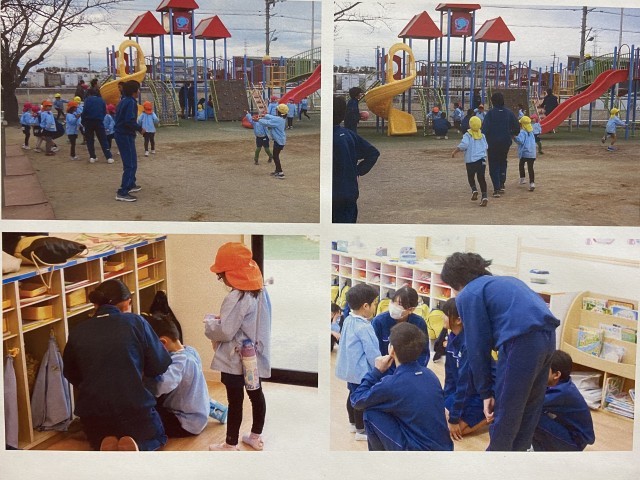 2枚目の写真は、2年生家庭科の授業での保育実習の様子です。11月に続いて、地域の幼稚園の皆さまにお世話になり、ありがとうございました。今日は学校で準備した企画や作成したものを持参して、園児の皆さんと楽しく過ごし、素晴らしい学びを得ました。