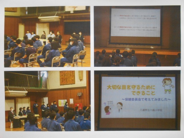 八條小、八條北小、八條中の3校合同で、毎日を元気で安全な生活を送るためにはどうしたらよいかについて一緒に考える会を開催しました。今日は「目の健康」がテーマでした。お世話になった小学校の皆様、学校歯科医、学校薬剤師の先生方、講師の先生方の実践的なお話に感謝申し上げます。児童生徒の皆さん、素晴らしい発表をありがとうございました。今日の内容をこれからの生活で活かしていきます。