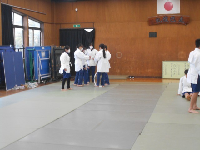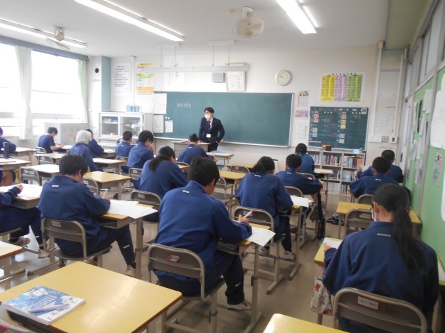 1,2年生、しえん学級は通常の授業を行いました。水曜日からは、卒業式に向けての全体練習や在校練習に参加します。写真は、1年生の体育、2年生の数学、しえん学級の英語の授業の様子です。
