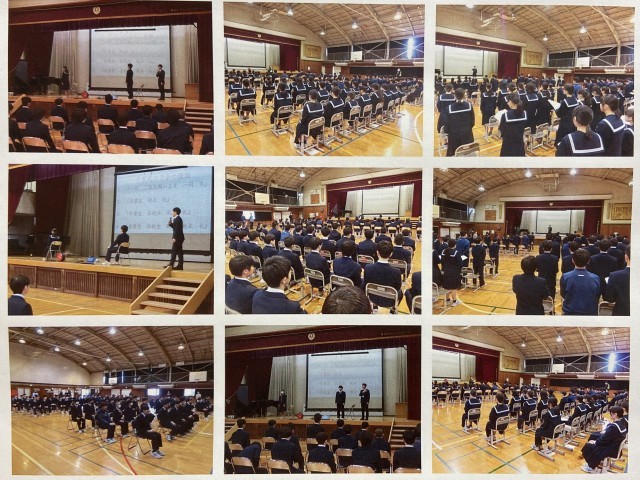 令和8年3月4日(水) 公開日 2026/03/04 更新日 2026/03/04 今日の八條中学校 卒業式全体練習 4校時に、全校生徒で卒業式全体練習を行いました。内容は、心構え、3年生の先生のお話、式の流れ確認、所作の確認、服装・頭髪について、歌練習、講評でした。みんなで素晴らしい卒業式にしましょう。