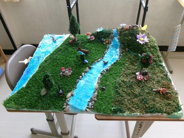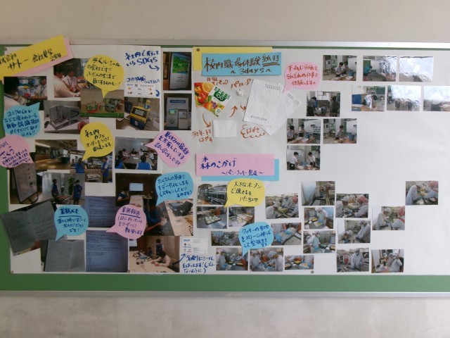 テストの様子を見ようと教室まで行くと、教室前の掲示板には職場体験(3Days)の掲示物や、教室内には作品展に向けて取り組んでいる制作物が。そして、子供たちは一生懸命テストを受験していました。