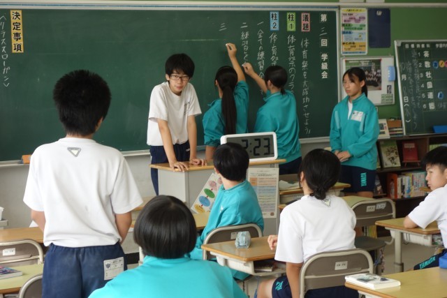 【2学年】体育祭に向けて始動! 公開日 2025/10/09 更新日 2025/10/09 2学年 10月8日(水)の5時間目は体育祭に向けた学級会がありました。体育委員と班長会のメンバーが中心となり、目標と練習の約束事について話し合いをしました。 2年生