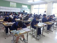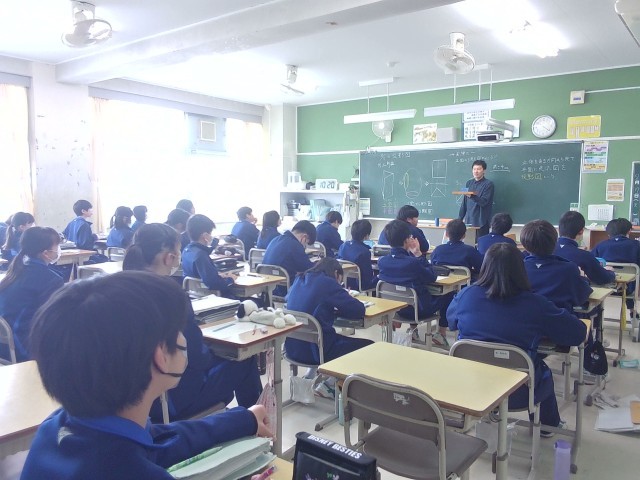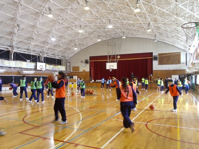 2月17日(火)、数学の授業では立体図形についての学習をおこないました。体育の授業ではハンドボールとバスケットボールに分かれて体を動かしました。